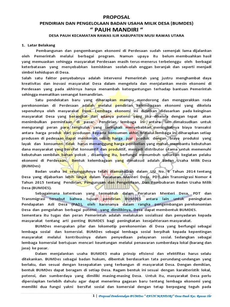 Proposal permohonan bantuan dana pembangunan mesjid download disini; Bumdes wirakarya ini bergerak di bidang usaha koperasi simpan pinjam, jasa, perdagangan, sembako, industri kecil dan rumah tangga. Mungkin anda pernah mendengar badan usaha milik . Proposal bumdes adalah sebuah dokumen yang berisi usulan rencana program dan kegiatan manajemen usaha badan usaha milik desa (bumdes) untuk . Badan usaha milik desa (bumdes).